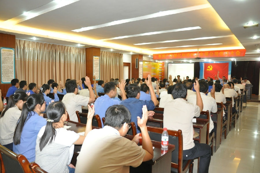 2015年7月1日,在中國共產(chǎn)黨建黨94周年到來之際,經(jīng)上級黨委批復同意,廣西公司隆重召開中共廣西銀億科技礦冶有限公司委員會全體黨員大會。