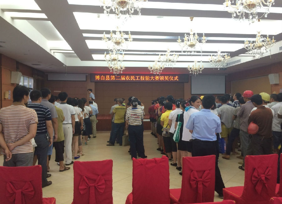 2015年8月31日,廣西博白縣法治廣場上張燈結(jié)彩,來自全縣各個(gè)廠區(qū)的技工門紛紛再此摩拳擦掌,共同迎接“博白縣第二屆農(nóng)民工技能大賽”開幕儀式。