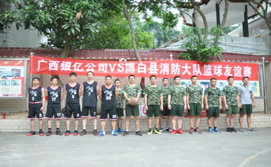 為了增進廣西銀億公司與博白縣消防大隊的友誼,2015年11月09日星期一下午,由黨工團聯(lián)合組織的軍民聯(lián)誼活動;第二屆廣西銀億公司vs博白縣消防大隊籃球友誼賽在博白縣消防大隊籃球場拉開帷幕,廣西公司黨委委員章群宏、工會副主席李國昌、團委副書記朱旭波均現(xiàn)場助威!廣西銀億公司籃球隊派10名隊員參加比賽,公司拉拉隊到場助陣。