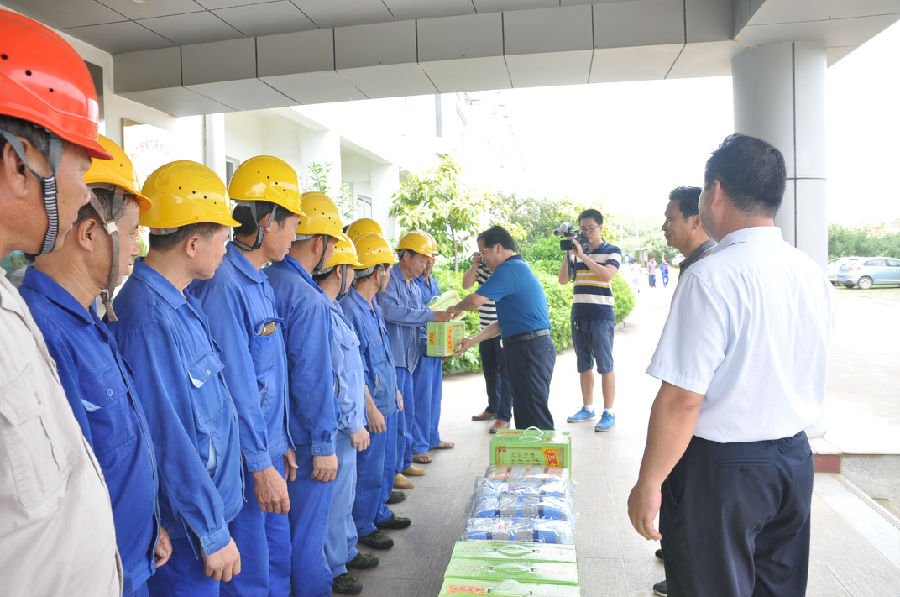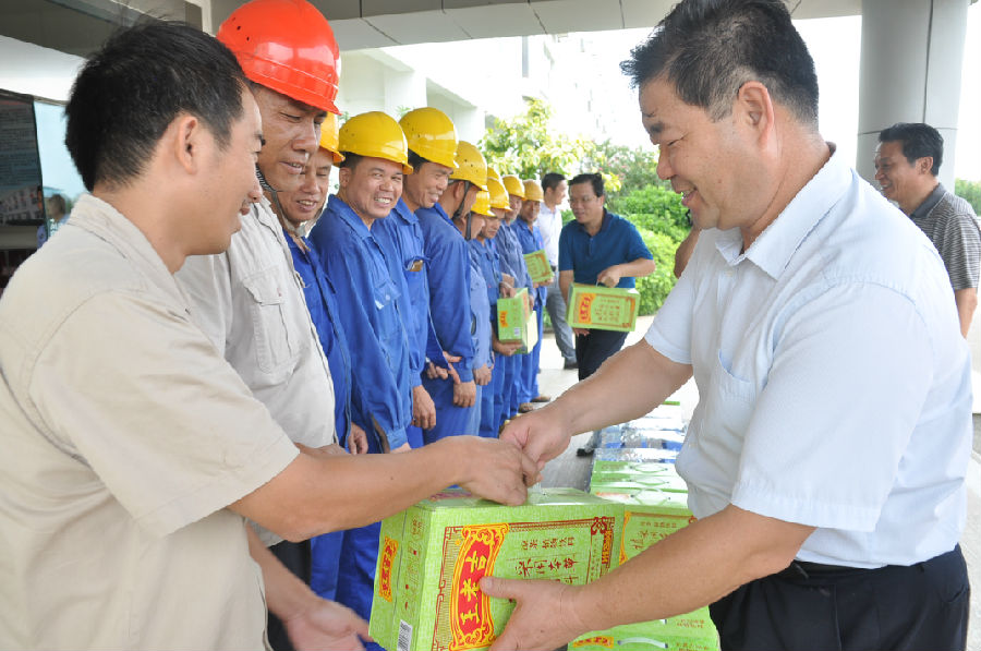 炎炎夏日,太陽高掛,室外溫度高達38度以上,縣總工會此次送清涼慰問,給炎熱的夏日帶來了一絲清涼。周鵬昌主席在公司領(lǐng)導(dǎo)的陪同下,看望、慰問了在高溫酷暑中仍堅守在崗一線工人,同時為他們送去了涼茶、毛巾等降溫物品。周鵬昌主席在慰問活動中一句句“你們辛苦了,謝謝大家的辛勤工作!,天氣熱,大家要注意身體,做到勞逸結(jié)合”關(guān)懷的話語和親切的慰問,讓一線工人確實感受到了縣總工會作為“娘家人”的真摯關(guān)愛。