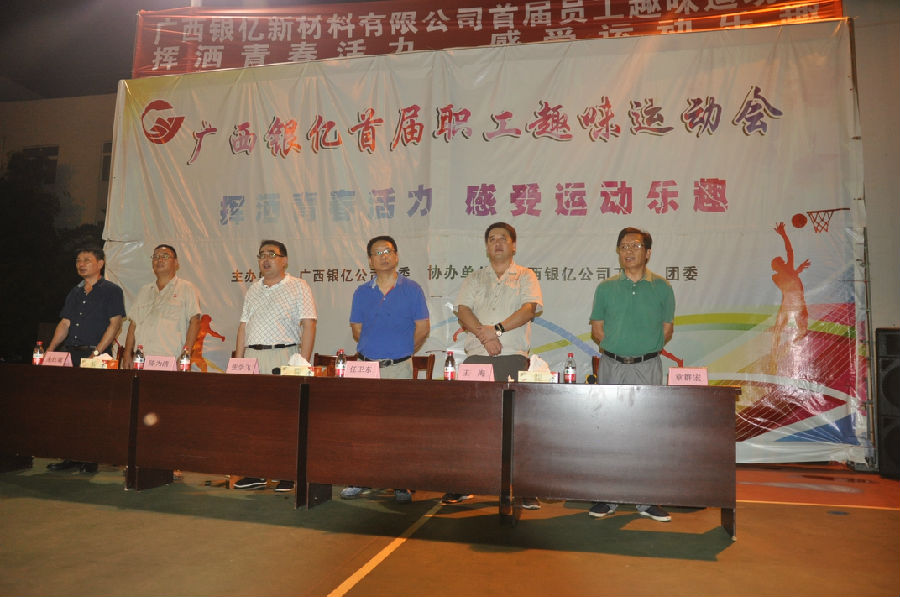2017年9月22日晚,廣西銀億首屆職工趣味運(yùn)動(dòng)會(huì)勝利閉幕。晚7:00,閉幕式在廣西銀億燈光球場(chǎng)舉行,廣西銀億常務(wù)副總經(jīng)理張學(xué)飛、副總經(jīng)理任衛(wèi)東、副總經(jīng)理陳為清、副總經(jīng)理朱紅斌、集團(tuán)新材料事業(yè)部副總王海、工會(huì)主席章群宏參加。參賽運(yùn)動(dòng)員在分工會(huì)的牌子引領(lǐng)下,成十列縱隊(duì)入場(chǎng),五個(gè)分工會(huì)的參賽運(yùn)動(dòng)員依次并排列隊(duì),整齊站在球場(chǎng)。