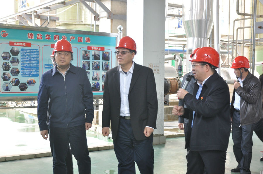 隨后,陳剛副主席在王小豐董事長(zhǎng)等領(lǐng)導(dǎo)班子的陪同下深入廣西銀億鎳鹽、鈷鹽車間生產(chǎn)現(xiàn)場(chǎng)。在鈷鹽車間,任衛(wèi)東副總經(jīng)理就鈷鹽車間建設(shè)與產(chǎn)生、技術(shù)與創(chuàng)新方面做了詳細(xì)匯報(bào)。陳剛副主席、韋韜市長(zhǎng)認(rèn)真考察車間生產(chǎn)環(huán)境、詳細(xì)了解生產(chǎn)流程、在線監(jiān)測(cè)記錄以及產(chǎn)品包裝過(guò)程等情況。