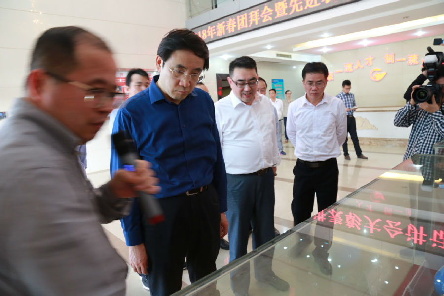 2018年3月28日,玉林新任市委書記黃海昆率相關(guān)部門深入廣西銀億調(diào)研。王小豐董事長、張學飛總經(jīng)理及工會主席章群宏熱情接待了黃書記一行。